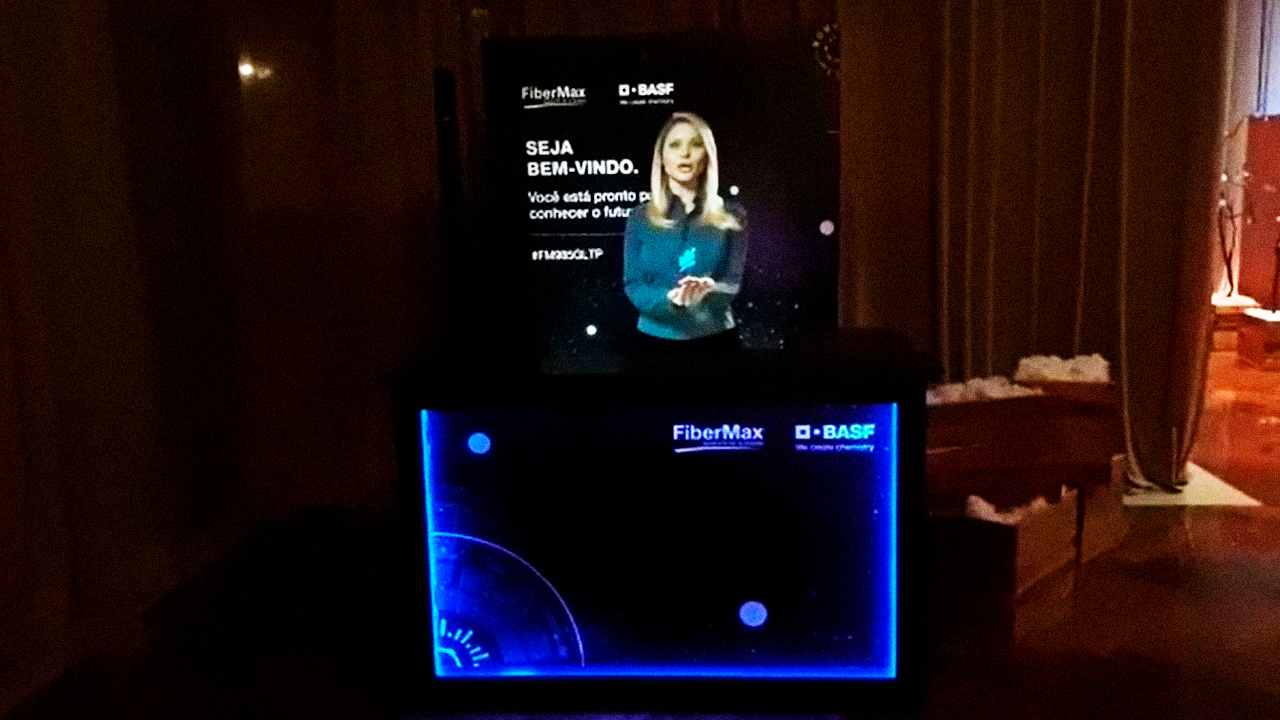 Através de um vídeo pré gravado, aplicado ao display da Promotora holográfica, a mesma é encarregada de informar os participantes de sua ativação sobre os produtos e serviços da empresa. Por fim, ela recepciona convidados em um evento.
